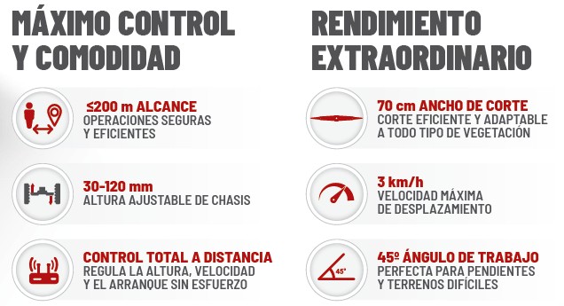 Su tecnología híbrida, con motor de gasolina y tracción eléctrica brushless,te ofrece máxima potencia, precisión y comodidad en cualquier entorno.